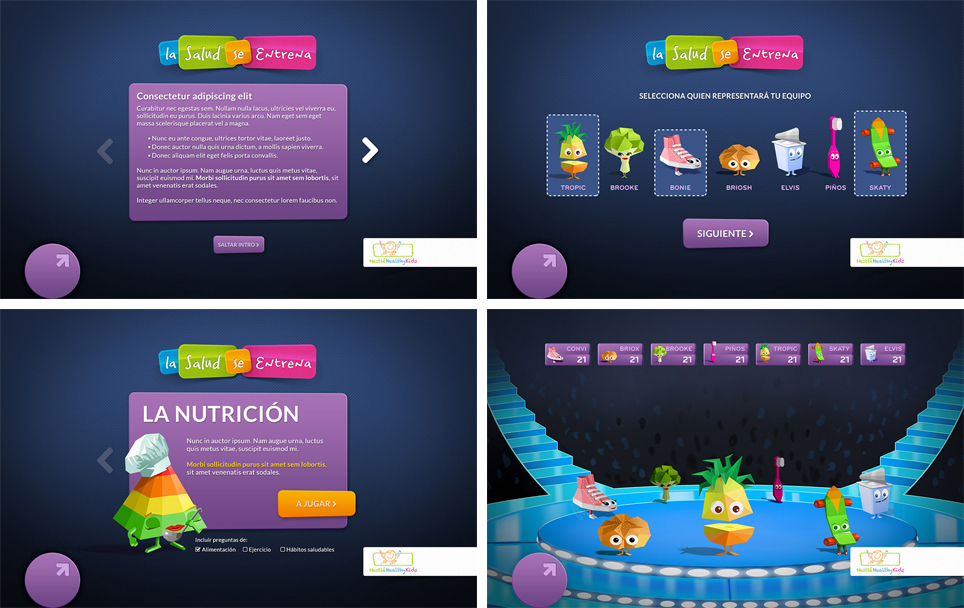 Proyecto educativo de Nestlé por encargo de la agencia HC Barcelona dirigido a las escuelas. El objetivo era promocionar hábitos saludables entre nuestros adorables retoños. Se trata de una plataforma online con información para alumnos y profesores, juegos y material de apoyo. Las ilustraciones las hice imitando un estilo vectorial e inspirándome en el look de juegos infantiles para soportes digitales. En esos momentos vi que las imágenes poliédricas estaban de moda y ahí que fui. Fue divertido diseñar los diferentes personajes, mi predilecto, el pan de Viena.